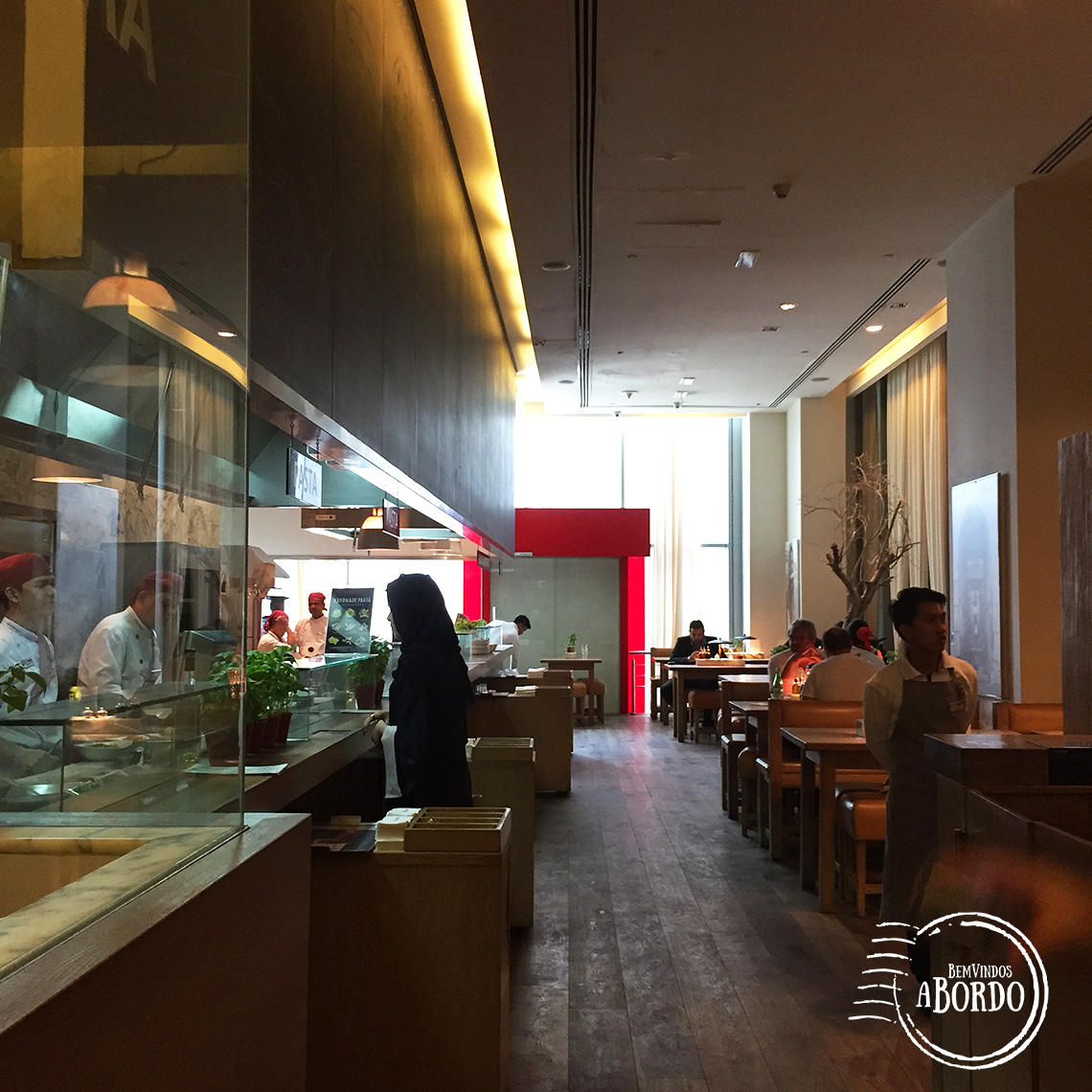 com Rucula (AED 49), um Fusilli ao Crema di Funghi (troquei a massa - AED 45) e uma pasta primavera com Fusilli (AED 45). Todos estavam ótimos, sem exceção.